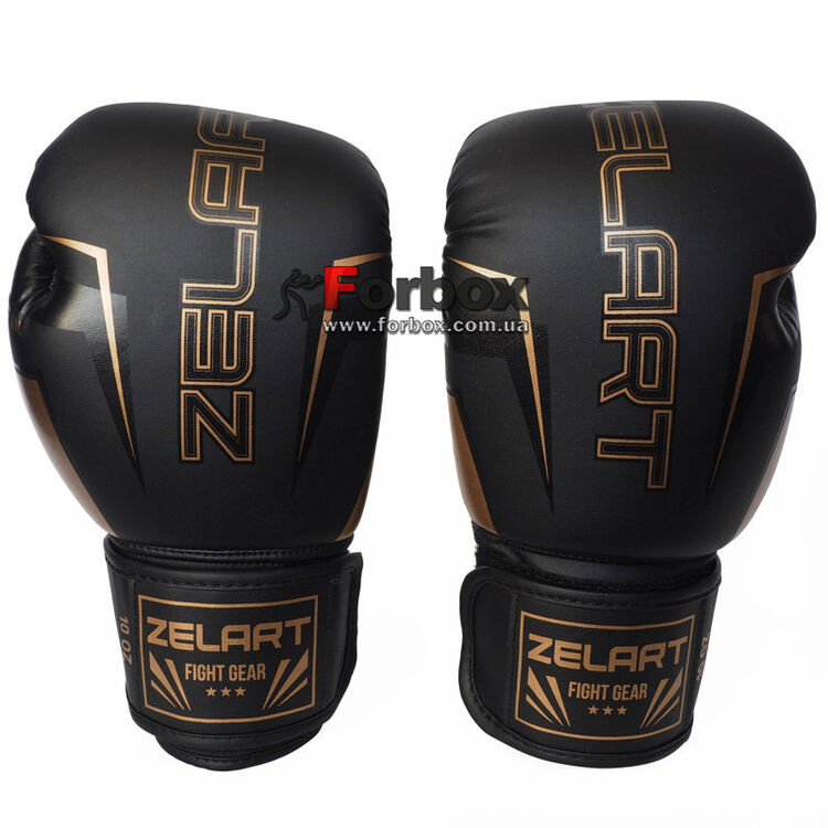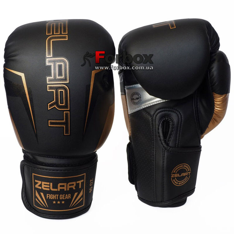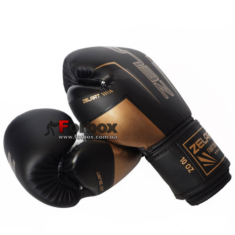 Боксерские перчатки Zelart Fight Gear на липучке из PU кожи (BO-1221, черно-золотой)